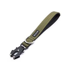 Besonders angenehm in der Hand liegt unsere taktische Hundeleine mit Handschlaufe. Der gepolsterte Handgriff mit weicher Neopren-Fütterung schneidet nicht ein – auch wenn der Hund mal kräftig ziehen sollte. Für kleine und mittelgroße Hunde bieten wir die Leine mit 2 cm Breite an und für große Rassen eignet sich die 3 cm breite Variante am besten. Der Sicherheitsverschluss verfügt über einen Quick Release-Mechanismus, sodass du die Leine blitzschnell anlegen und auch öffnen kannst. Durch die beiden Schnapper ist er doppelt gesichert und nur wenn du beide davon gleichzeitig betätigst, lässt er sich öffnen. So kann es auf keinen Fall passieren, dass die Leine aus Versehen aufgeht, wenn sich dein Vierbeiner an etwas reibt oder fröhlich durch Pfützen tollt.
