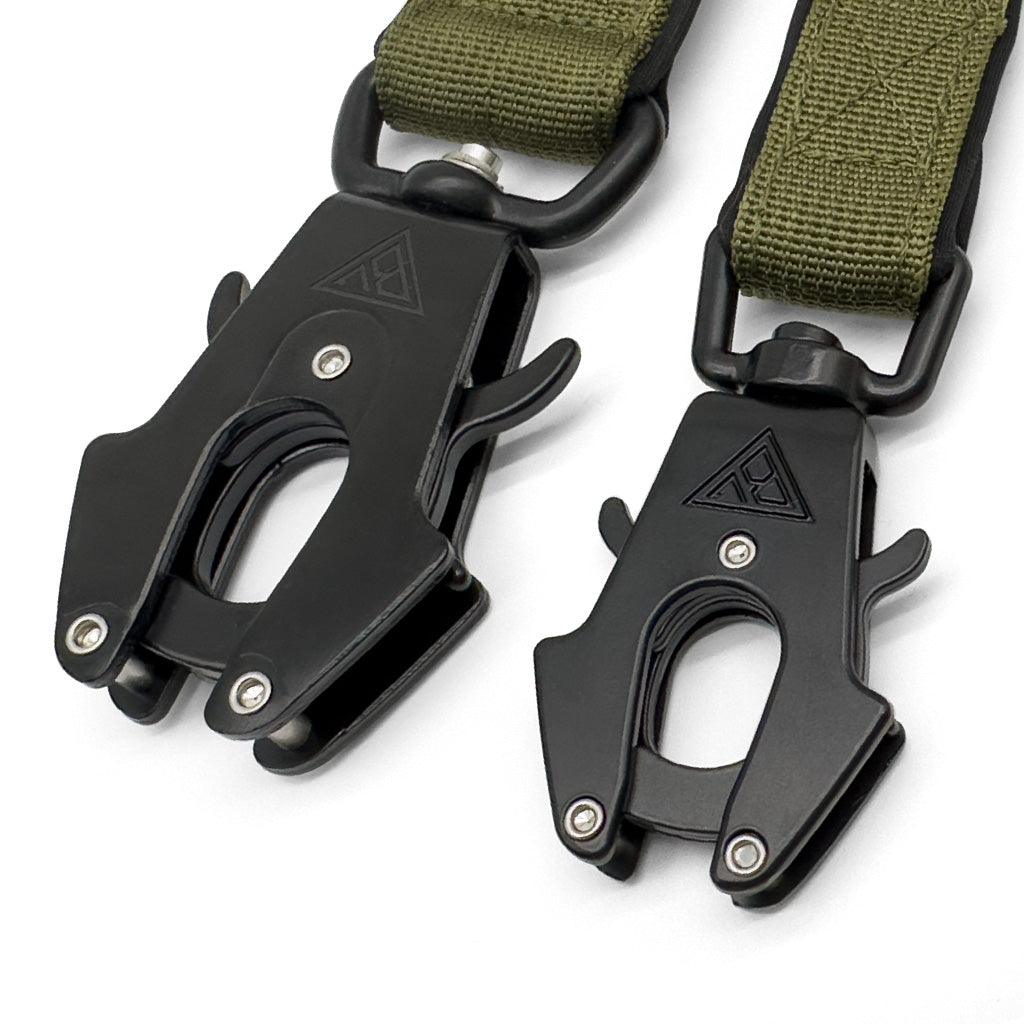 Der Sicherheitsverschluss der Tactical Leinen ist durch die zwei Schnapper doppelt gesichert. Der Verschluss lässt sich nur durch Betätigung beider Schnapper öffnen. Verfügbar in 2 Größen.