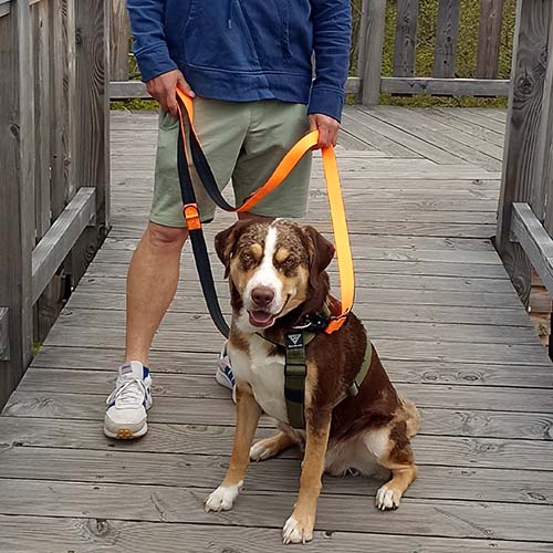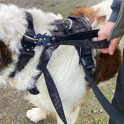Tolle Leine! Robust und für meinen jungen großen Schweizer ideal. Insbesondere die besonderen Karabiner geben mir Sicherheit.