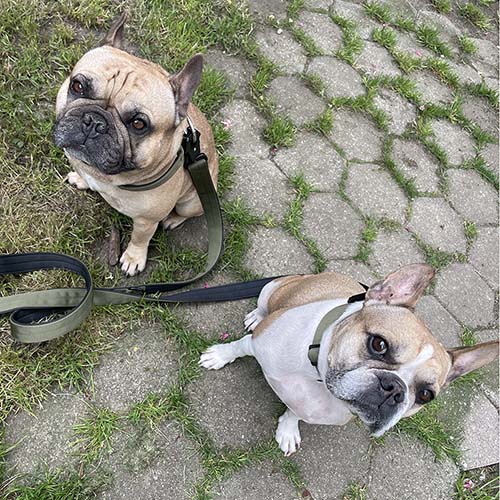 Ich bin begeistert. Mein erster Kauf waren Halsbänder für meine beiden Frenchies - top. Nun habe ich die Leine in der passenden Farbe gekauft. Erst war ich unsicher , ob die 3 cm zu breit sind , aber ..., nein . Ich hänge meine beiden dran u absolut genial. Verarbeitung toll, die Verschlüsse mit den Karabinern total klasse. Klick Klack .... u sehen einfach schick aus / meine Meinung: WUNDERBAR 😁😊👌